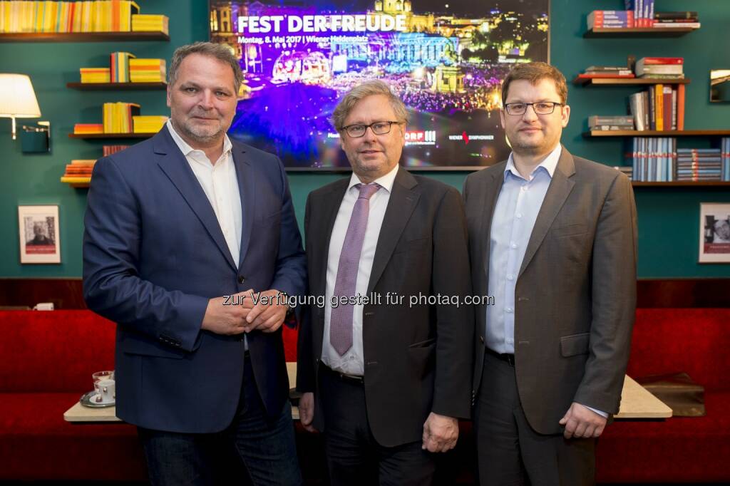 Willi Mernyi, Vorsitzender des Mauthausen Komitee Österreich, Dr. Alexander Wrabetz, Generaldirektor ORF und Johannes Neubert, Intendant der Wiener Symphoniker - Mauthausen Komitee Österreich: Fest der Freude am 8. Mai: Befreiung Österreichs vom Nationalsozialismus (Fotocredit: Mauthausen Komitee Österreich/APA-Fotoservice/Hörmandinger), © Aussender (26.04.2017)