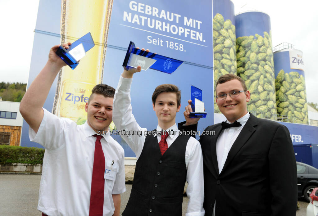 Lukas Grubmüller aus NÖ (2. Platz), Gewinner Kristian Kovacic aus Wien, Peter Hartl aus Kärnten (3. Platz) - Brau Union Österreich AG: Zipfer Zapf Masters 2017: Titel geht nach Wien (Fotocredit: Brau Union Österreich), © Aussender (28.04.2017)