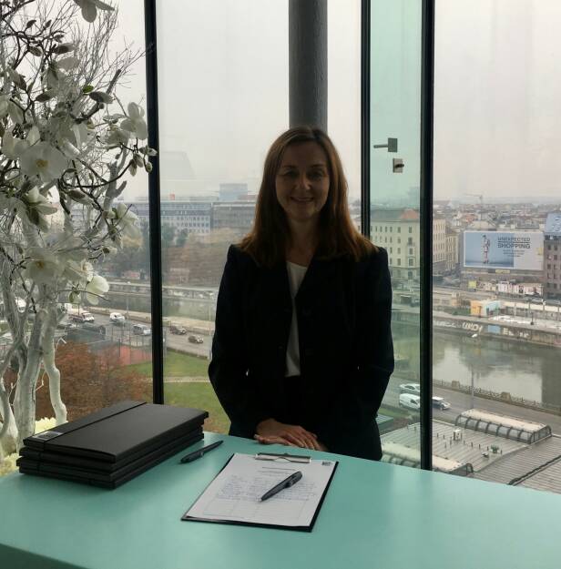 FACC-Pressekonferenz zum Halbjahresergebnis am 18.10. 2017: Andrea Schachinger, FACC Corporate Communications & Marketing; Fotocredit: Christine Petzwinkler/BSN (18.10.2017)
