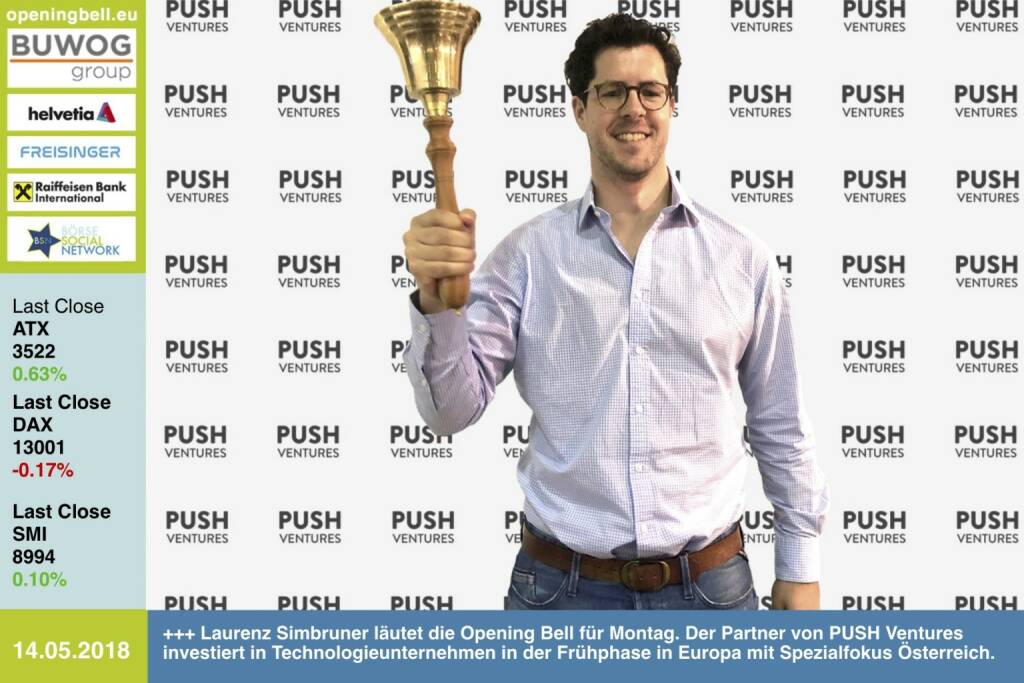 14.5.: Laurenz Simbruner läutet die Opening Bell für Montag. Der Partner von PUSH Ventures investiert in Technologieunternehmen in der Frühphase in Europa mit Spezialfokus Österreich. http://push.ventures