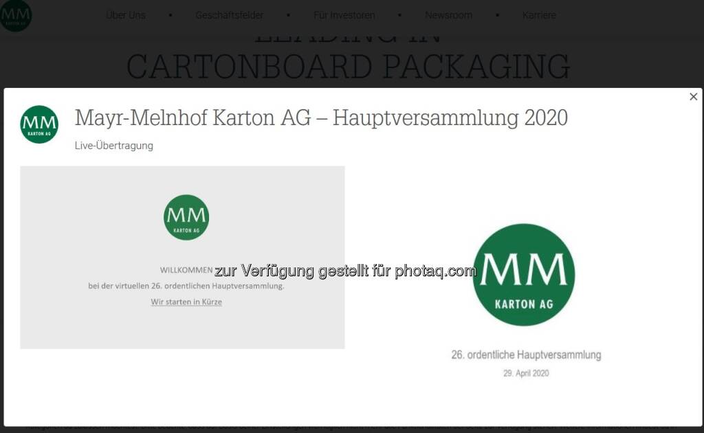 Historischer Tag: offenbar erste virtuelle HV Österreichs am 23.4.2020, SBO. (23.04.2020)