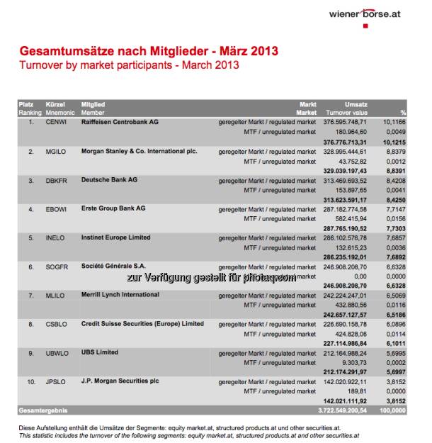 RCB im März die Umsatz-Nr. 1 unter den Börse Wien Handelsmitgliedern (c) Wiener Börse (07.04.2013)