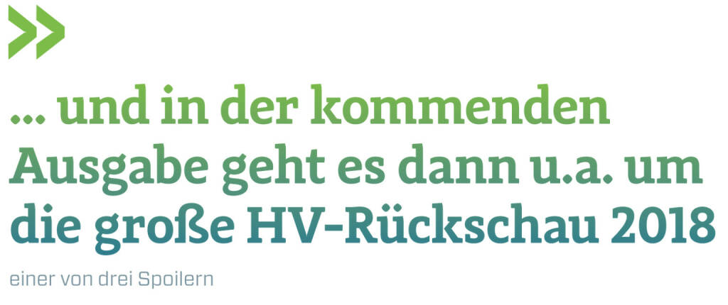 ... und in der kommenden Ausgabe geht es dann u.a. um die große HV-Rückschau 2018