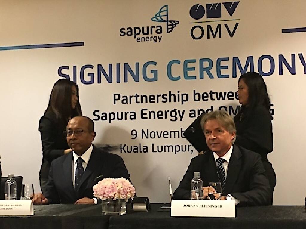 OMV und Sapura Energy Unterzeichnung 9.11.2018, v.l.n.r. 1. Reihe: Tan Sri Dato’ Seri Shahril Shamsuddin, Präsident und Generaldirektor, Sapura Energy; Johann Pleininger, Vorstandsmitglied Upstream und stellvertretender Vorstandsvorsitzender der OMV; Fotocredit:OMV, © Aussendung (12.11.2018)