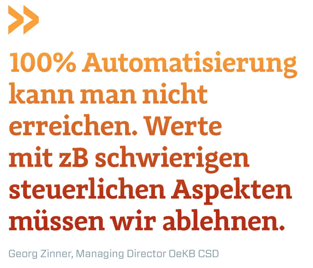 100% Automatisierung kann man nicht erreichen. Werte mit zB schwierigen steuerlichen Aspekten müssen wir ablehnen. Georg Zinner, Managing Director OeKB CSD (14.12.2018)