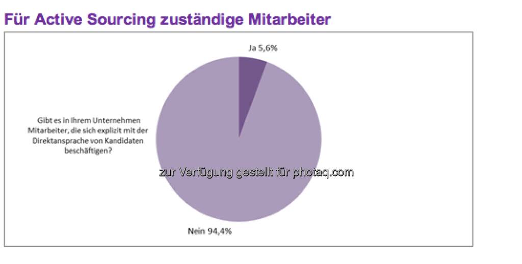 Obwohl die mit dem Begriff Active Sourcing überschriebene Direktansprache interessanter Kandidaten von den Studienteilnehmern als wichtige interne Herausforderung für die Personalbeschaffung angesehen wird, gibt es lediglich in 5,6 Prozent der antwortenden Unternehmen Mitarbeiter, die sich explizit mit Active Sourcing beschäftigen (c) Monster (11.04.2013)