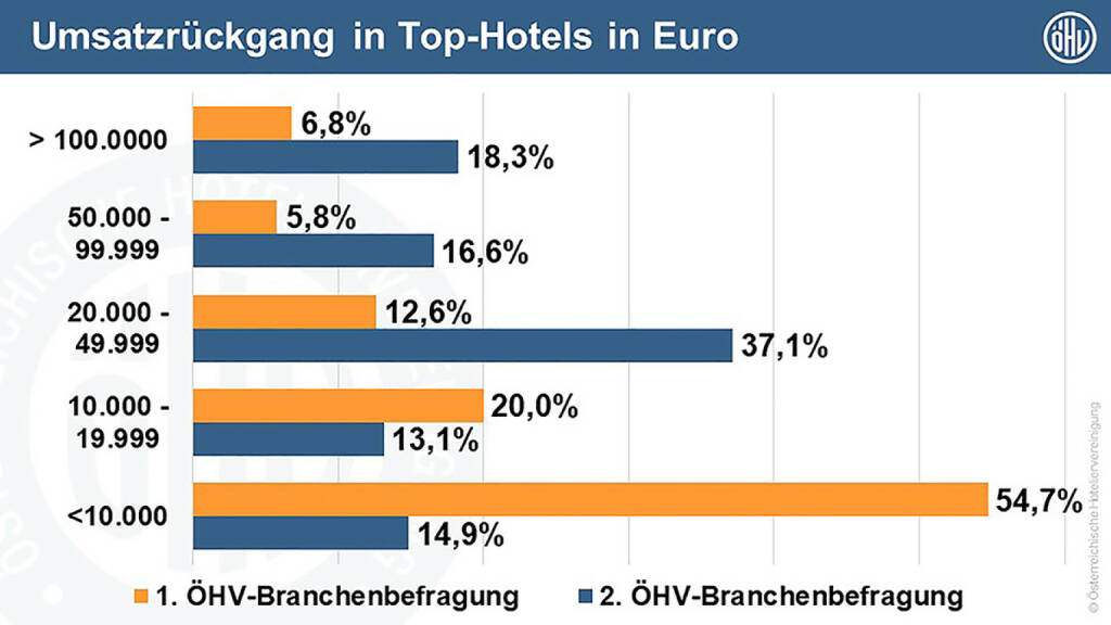 ÖHV - Österreichische Hoteliervereinigung: Der Coronavirus-bedingte Schaden für Hotels nimmt weiter zu; mit Tourismus-Milliarde und Null-Lohnsteuer Arbeitsplätze retten, Umsatzrückgang bei Top-Hotels in Euro; Fotocredit: ÖHV, © Aussender (06.03.2020)