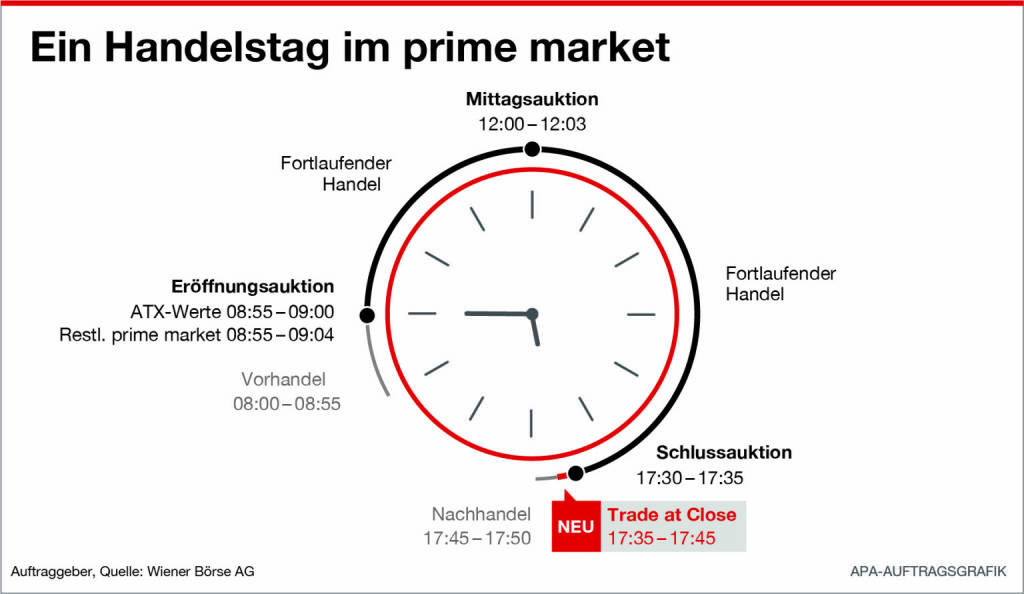 Wiener Börse - Infografik Handelstag im prime market, Credit: APA/Wiener Börse, © Aussender (24.11.2020)
