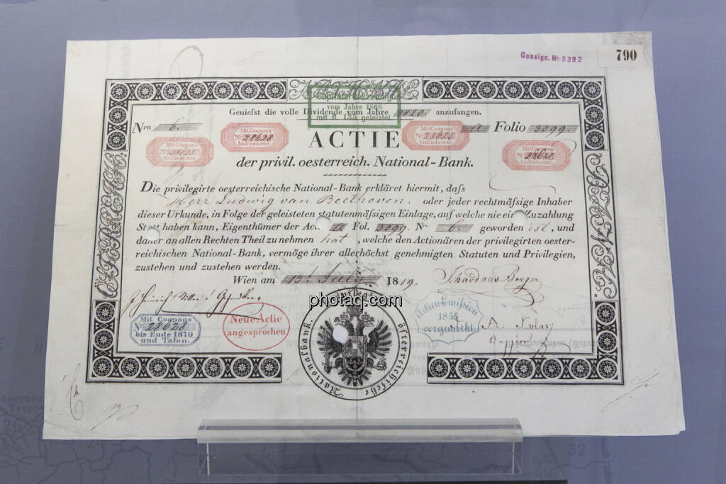 Aktie der Privilegierten österreichischen National-Bank, ausgestellt am 13.7.1819 auf Ludwig van Beethoven, © finanzmarktfoto.at/Martina Draper (15.04.2013)