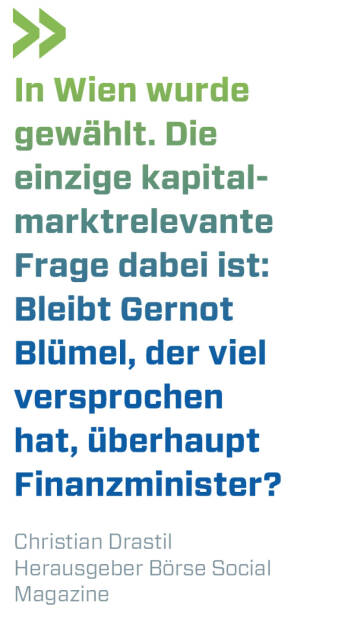 In Wien wurde gewählt. Die einzige kapitalmarktrelevante Frage dabei ist: Bleibt Gernot Blümel, der viel versprochen hat, überhaupt Finanzminister?