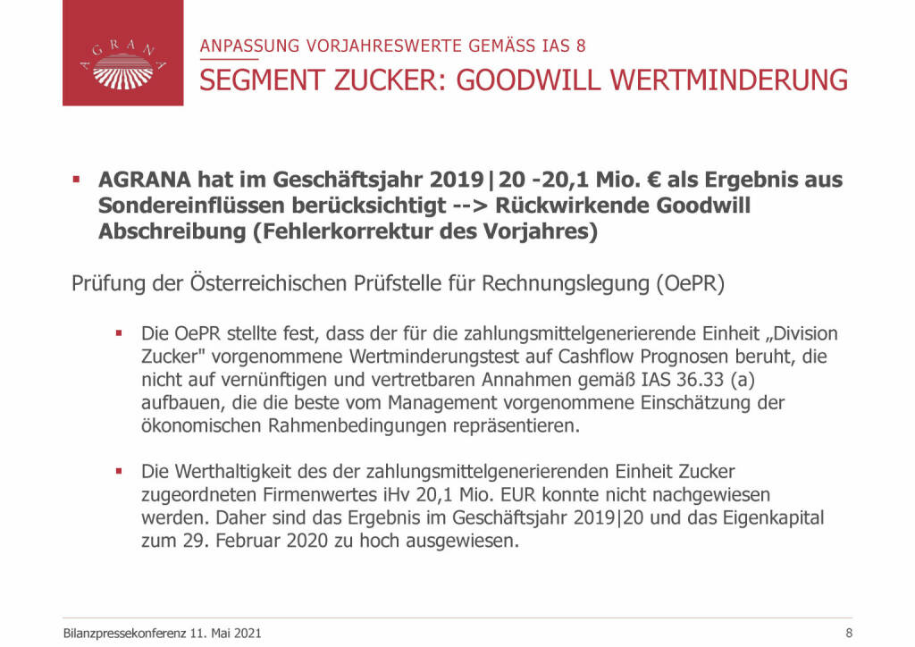 Agrana - Segment Zucker: Goodwill Wertminderung (20.05.2021)
