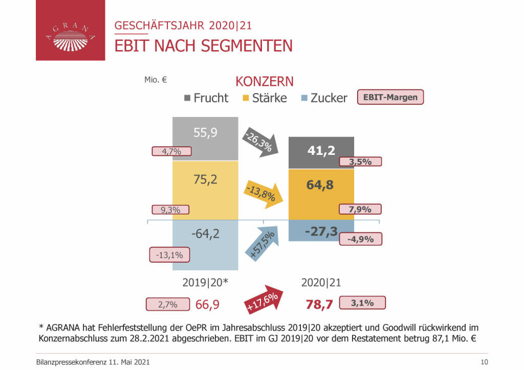 Agrana - EBIT nach Segmenten (20.05.2021)