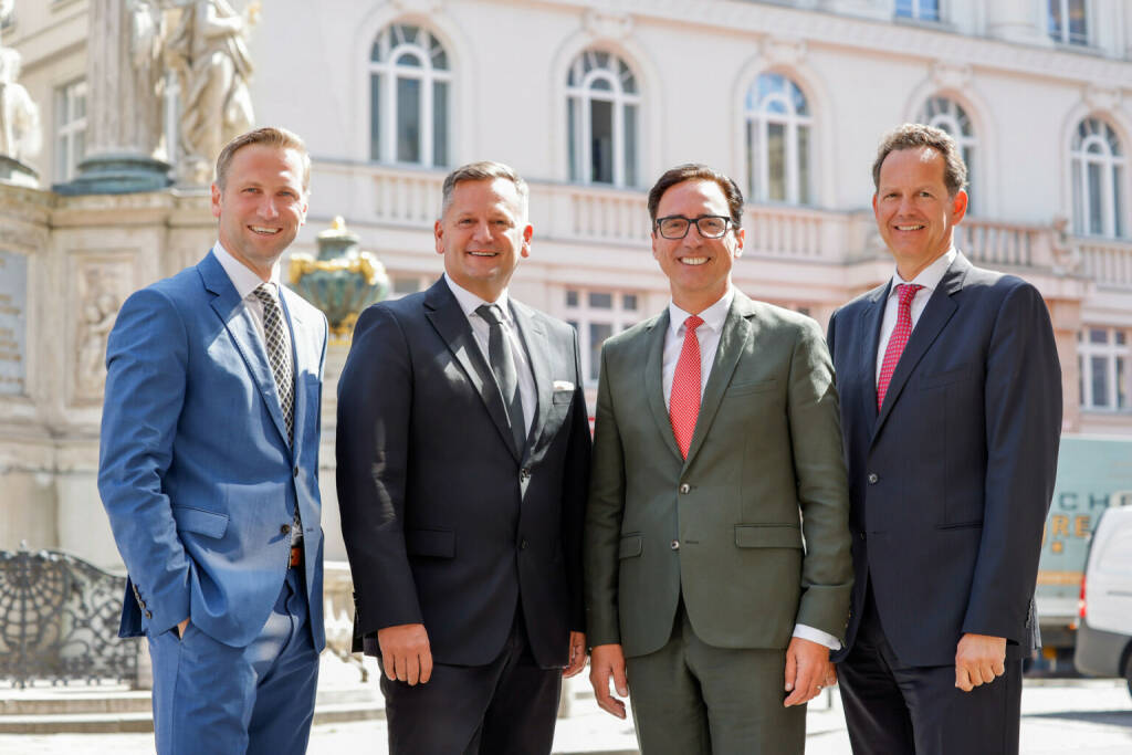 Helvetia Versicherungen AG: Das Gesamtprämienvolumen wächst um 7 Prozent auf 582,1 Mio. Euro. Helvetia Vorstand mit Andreas Gruber, Thomas Neusiedler, Werner Panhauser und Andreas Bayerle Fotocredit:Helvetia, © Aussender (30.03.2023)