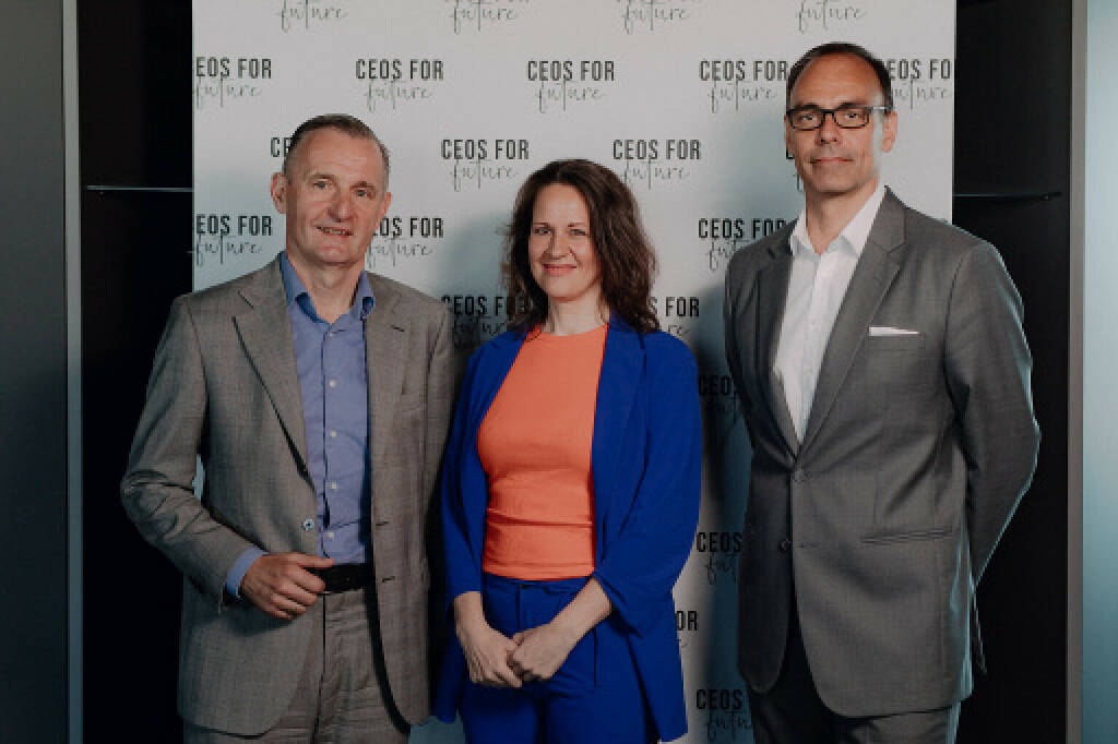 CEOs FOR FUTURE setzt konkrete Impulse zur Dekarbonisierung des Energiesystems. Denn: Sichere Energieversorgung ist einer der wesentlichsten Standortfaktoren für Industrie und Wirtschaft. V.l.n.r.: Peter Weinelt (Wiener Stadtwerke), Christiane Brunner (CEOs FOR FUTURE) und Berthold Kren (Holcim Central Europe) Credit: CEOs FOR FUTURE/LIEB.ICH Productions, © Aussender (14.07.2023)