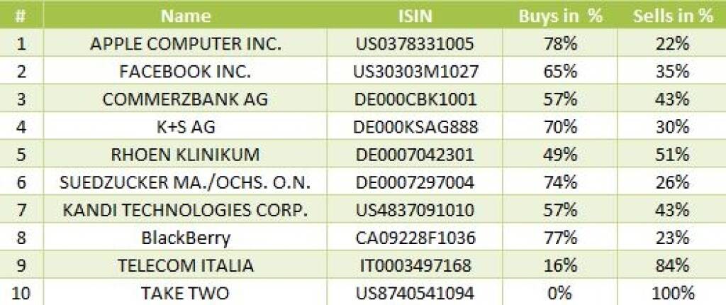 wikifolio-View 11.9: Die Gesamtübersicht mit Apple meistgehandelt (11.09.2013)