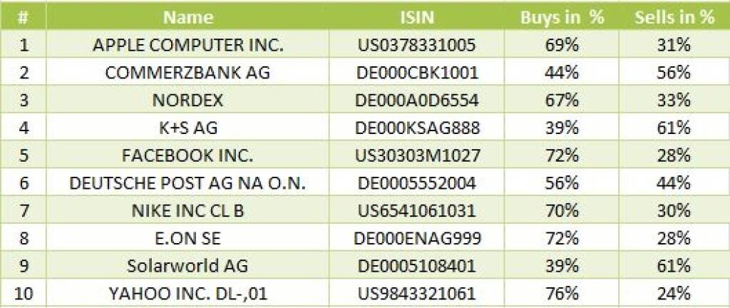 wikifolio-View 24.9: Die Gesamtübersicht mit Apple meistgehandelt (24.09.2013)