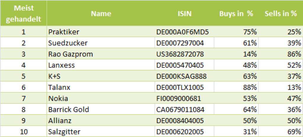 wikifolio-View 11.7.: Die Gesamtübersicht mit Praktiker meistgehandelt (12.07.2013)