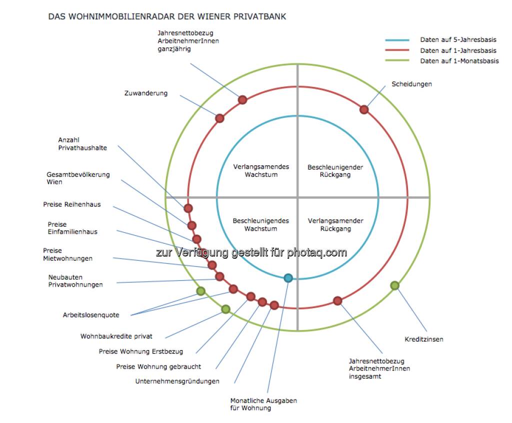 Das Wohnimmobilienradar der Wiener Privatbank soll grundsätzlich den Wohnimmobilienmarkt in Wien abbilden. Dafür werden ausgewählte Parameter in den jeweiligen Sektoren dargestellt (15.12.2012)