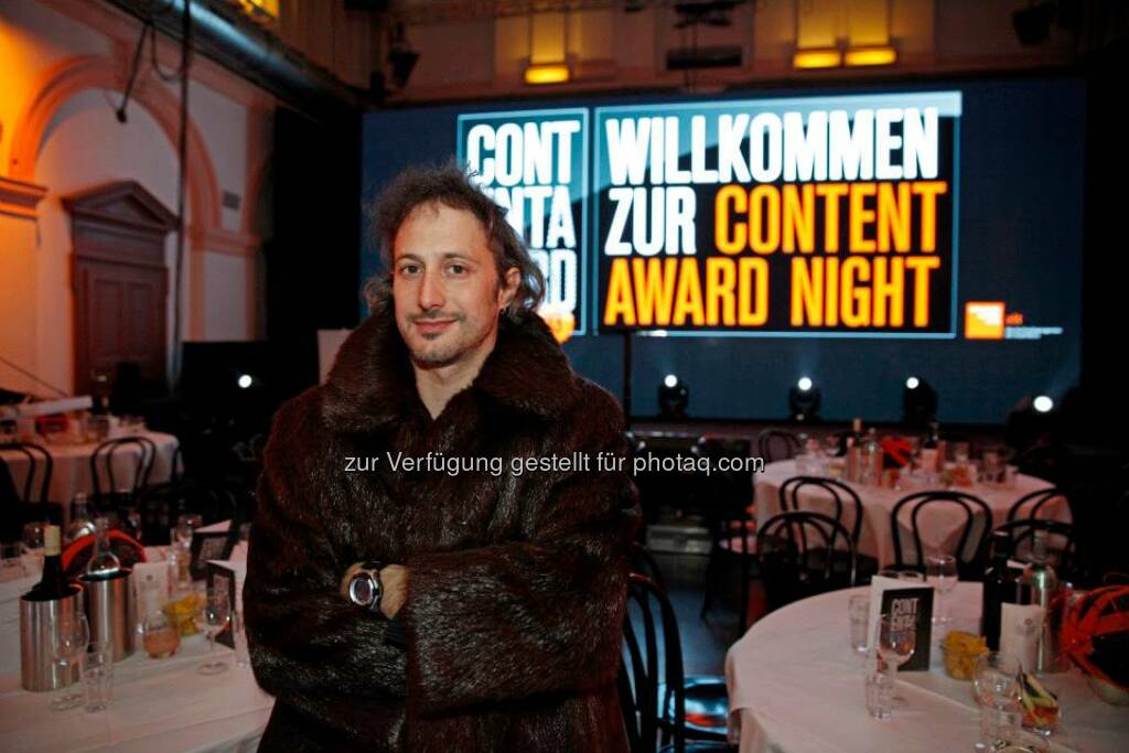 Moderator Michael Ostrowski führte durch den Abend. Die Pelzjacke brauchte er letztendlich nicht - bei 300 Menschen im Publikum war es schön warm :), © ZIT, www.contentaward.at , www.zit.co.at (15.11.2013)