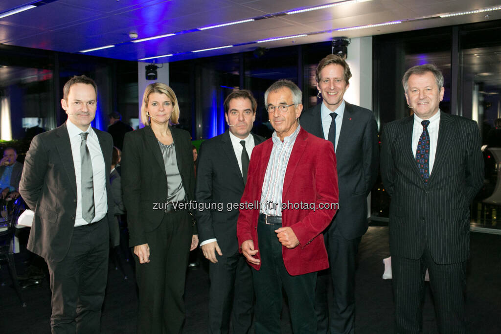 Jan Krainer, SPÖ-Bereichssprecher für Budget und Finanzen, SPÖ, Franz Schellhorn, Leiter des neuen Thinktanks Agenda Austria, Barbara Potisk-Eibensteiner, CFO RHI AG, Rainer Nowak, Chefredakteur „Die Presse“, Stephan Schulmeister, Wifo, Eduard Zehetner, CEO Immofinanz Group, © Martina Draper für Immofinanz (26.11.2013)