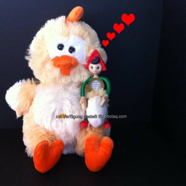Heute ist National Hug Day – der Erste Bank Sparefroh hat dies zum Anlass genommen und einen neuen Freund gefunden. Kiki, das Küken ist in allen Erste-Filialen erhältlich. Mit dem Kaufpreis von 12 Euro werden krebskranke Kinder unterstützt. (21.01.2014)