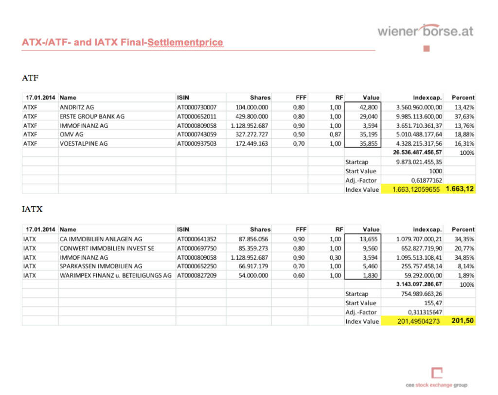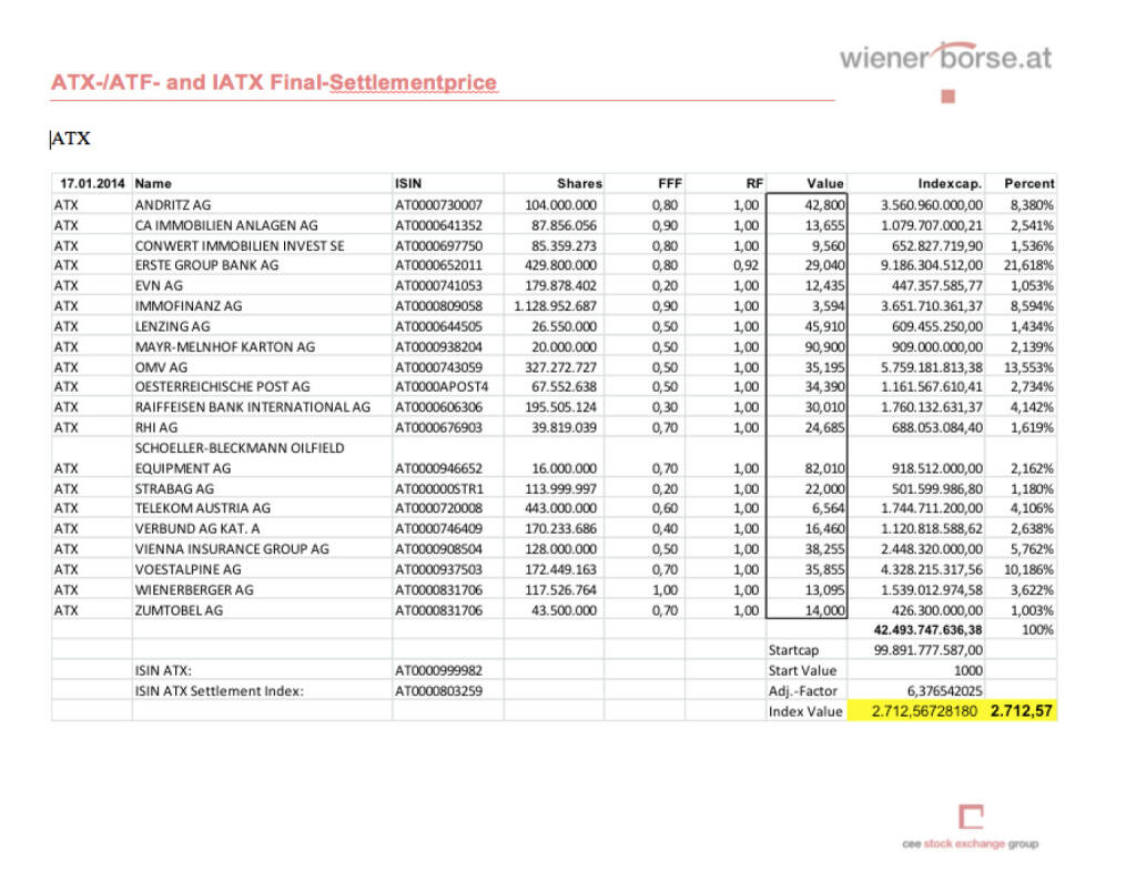 IATX- und ATXFive-Settlements Jänner 2014 (c) Wiener Börse (17.01.2014)