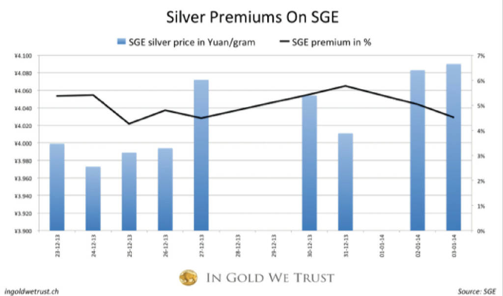 Physisches Silber wird in China mit 5% Premium gehandelt (20.01.2014)