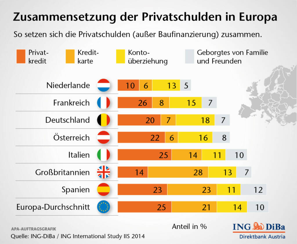 Zusammensetzung der Privatschulden in Europa, (C) ING-Diba (04.02.2014)