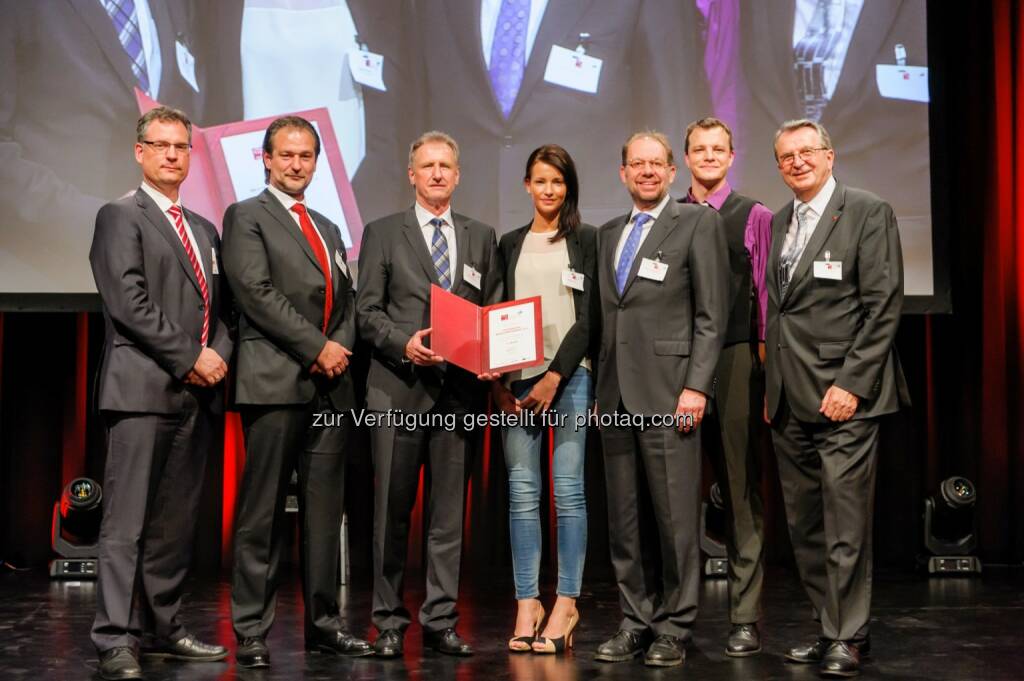 qualityaustria Winners' Conference: Staatspreisträger und Kategoriesieger, v.l.n.r.: Konrad Scheiber, CEO Quality Austria; Gerd Hartinger, GF GGZ; Martin Orehovec, Qualitäts- und Projektmanagement GGZ; Martin Lackner, GF 10hoch4 Photovoltaik GmbH; Hannes Mikosch, General Manager der Businessunit H, Magna Steyr Fahrzeugtechnik AG & Co KG Contract Manufacturing Mini Countryman und Mini Paceman; Johannes Gschwandtner, GF technosert electronic GmbH; Jürgen Freynhofer, Quality Management technosert electronic GmbH; Martin Egginger, Business Development Officer technosert electronic GmbH; Martin Janda, Wirtschaftsministerium. , © Aussendung (12.06.2014)