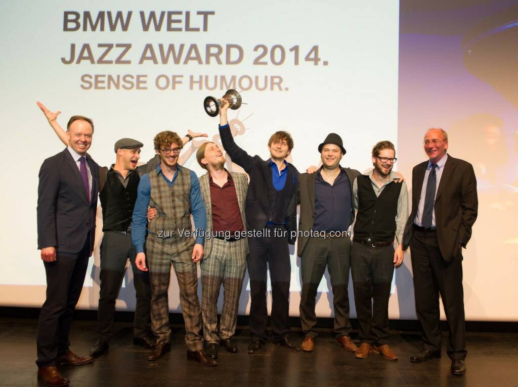 Ian Robertson, Mitglied des Vorstands der BMW AG, Hildegard Lernt Fliegen, Hans-Georg Küppers, Kulturreferent der Stadt München: Hildegard Lernt Fliegen gewinnt den BMW Welt Jazz Award 2014, © Aussendung (05.05.2014)