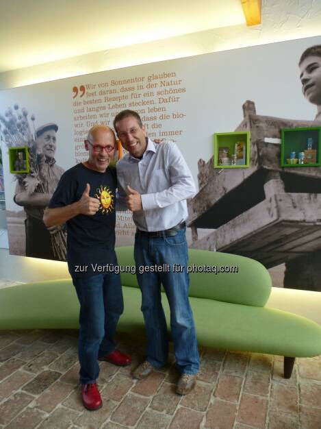 Johannes Gutmann, Gründer und Chef von Sonnentor und Dietmar Sternad, FH-Professor an der Fachhochschule Kärnten: FH Kärnten und Sonnentor gewinnen internationalen Fallstudienpreis "Organic Growth at Sonnentor", © Aussendung (05.06.2014)