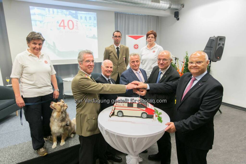 Johannes Bucher, Präsident der Johanniter-Unfall-Hilfe, Ernst-Joachim Thonke, Gründer u. 1. Präsident der Johanniter-Unfall-Hilfe, Sozialminister Hundstorfer, 1. Landtagspräsident Harry Kopietz: 40 Jahre Johanniter-Unfall-Hilfe in Österreich, © Aussendung (14.06.2014)