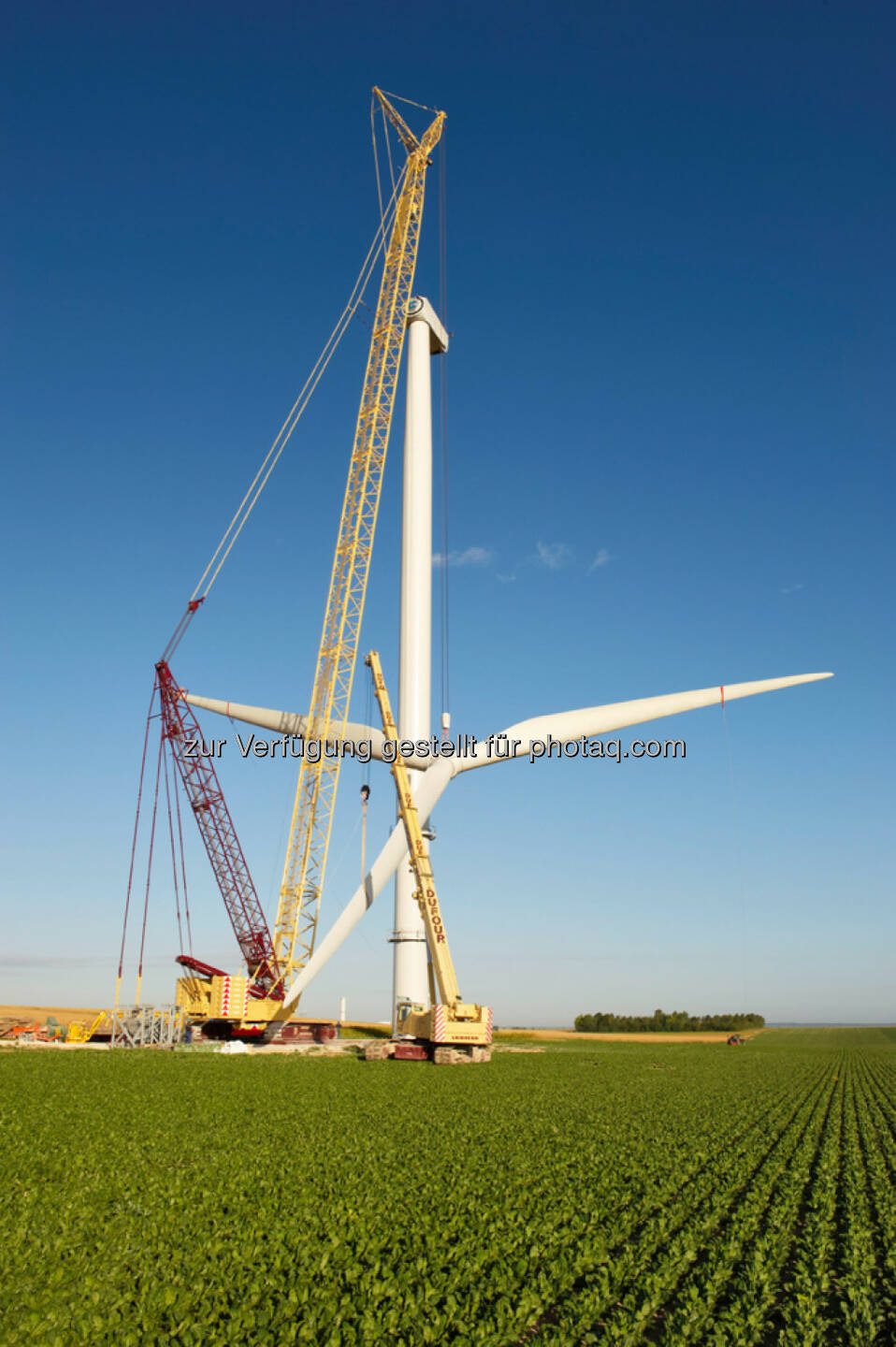 Frankreich , Windenergie, Aufbau einer Nordex N100 gamma im Windpark Germinon in der Champagne, Frankreich. (c) Foto: Jan Oelker / Nordex, jan.oelker@gmx.de