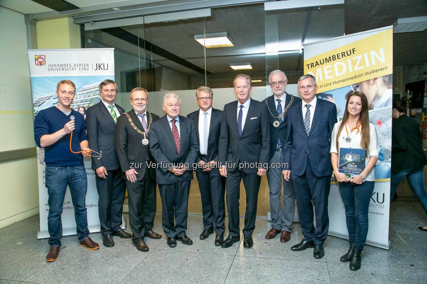 Studierender, Rektor Josef Smolle (Medizinischen Universität Graz), Rektor Richard Hagelauer (JKU), Landeshauptmann Josef Pühringer, Bürgermeister Klaus Luger, Reinhold Mitterlehner (Vizekanzler und Bundesminister für Wissenschaft, Forschung und Wirtschaft), Ferdinand Hofstädter (Vizerektor und Dekan der Medizinfakultät), Alois Stöger (Infrastrukturminister), Studierende: Am 29. September 2014, feierte die Johannes Kepler Universität (JKU) Linz die Gründung ihrer neuen Medizinischen Fakultät mit einem großen Festakt. Rund 600 Ehrengäste kamen, darunter auch die ersten 60 Studierenden des Gründungsjahrgangs.