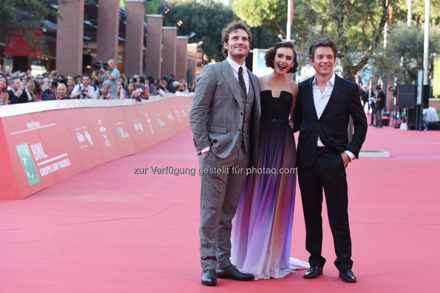 Sam Claflin, Lily Collins und Christian Ditter auf dem Roten Teppich von 'Love, Rosie' beim 9. Film Festival von Rom, Italien. (C) 2014 Constantin Film Verleih GmbH. "Constantin Film: Stars, Blitzlichtgewitter und glückliche Fans: Love, Rosie in Rom auf dem Filmfestival, "obs/Constantin Film/Stefania D'Alessandro/Getty Images