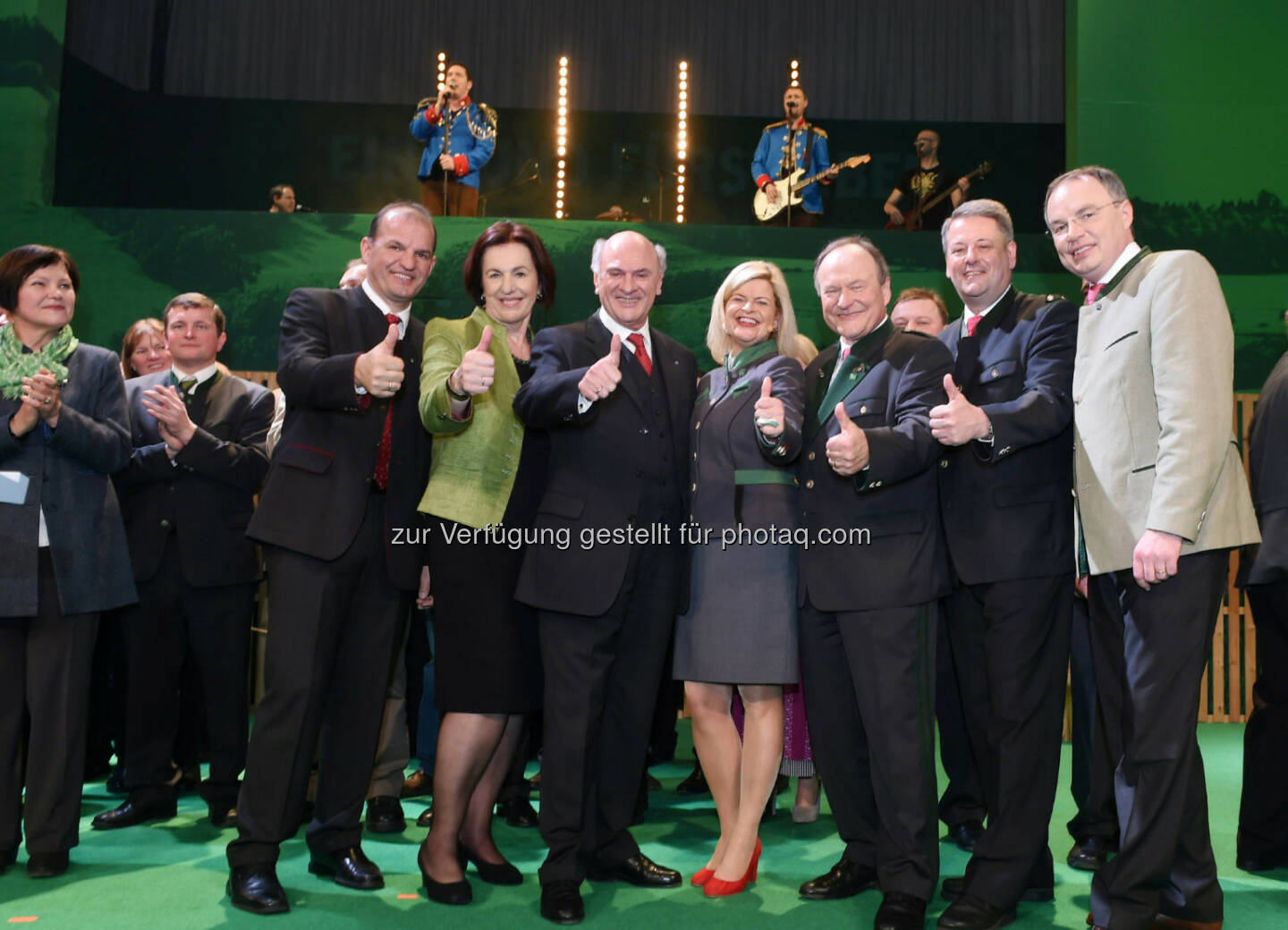 Die Kandidaten Otto Auer, Theresia Meier mit LH Erwin Pröll, Direktorin Klaudia Tanner, Spitzenkandidat Hermann Schultes, Minister Andrä Rupprechter und Agrar-Landesrat Stephan Pernkopf beim Wahlauftakt im VAZ: Bauernbund Niederösterreich (BBN): Zukunft der Bäuerinnen und Bauern gestalten