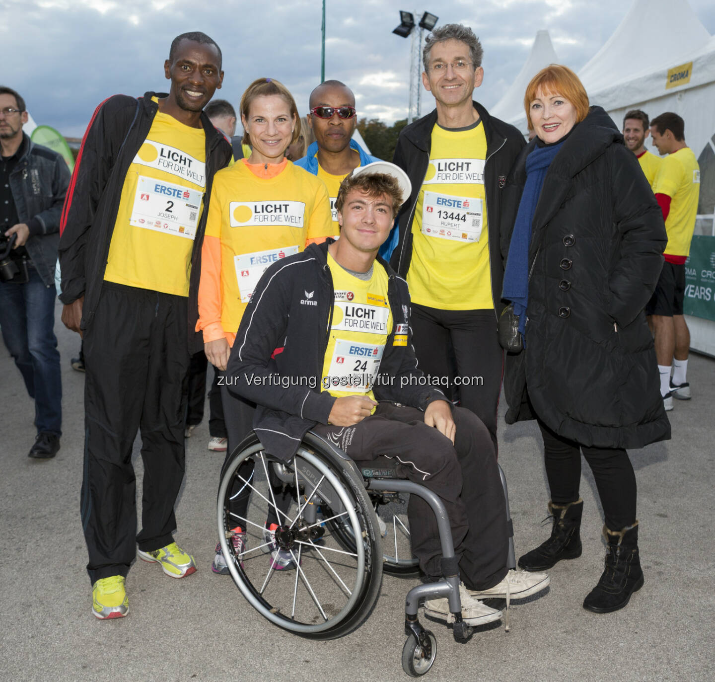 Joseph Kibunja, Kristina Sprenger, Henry Wanyoike, Nico Langmann, Rupert Roniger, Chris Lohner : 19.700 Mal Danke von "Licht für die Welt" : Auch der erste bank vienna night run 2015 stand ganz im Zeichen der Menschlichkeit. Tausende Profi- und HobbyläuferInnen gingen für den guten Zweck an den Start : Fotocredit: Thomas Mayer