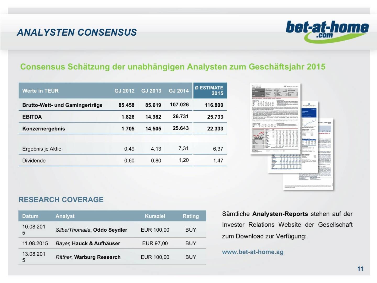 Unternehmenspräsentation bet-at-home.com, Klaus Fahrnberger, 30.9.2015