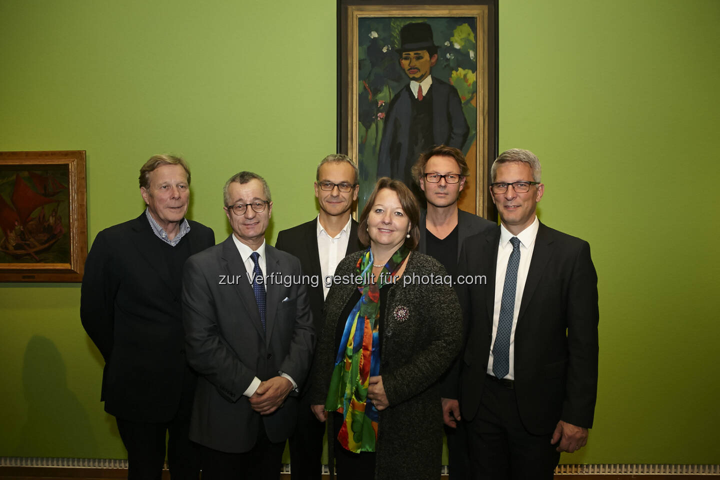 Otto Letze (Herausg. Ausstellungskataloges), Tayfun Belgin (Dir. Osthaus Museum Hagen), Ivan Ristić (Kurator Ausstellung Leopold Museum), Gabriele Langer (Kaufm. Dir. Leopold Museum), Hans-Peter Wipplinger (Museologischer Dir. Leopold Museum), Erik O. Schulz (Oberbürgermeister Stadt Hagen) : Leopold Museum eröffnet „Farbenrausch“ : Deutsche Expressionisten aus dem Osthaus Museum Hagen zu Gast in Wien : Fotocredit: Leopold Museum/APA-Fotoservice/Roßboth
