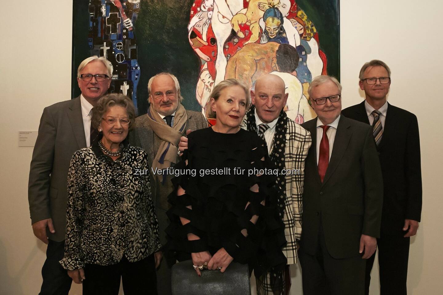 Carl Aigner (Direktor Landesmuseum NÖ, Vorstandsmitglied Leopold Museum-Privatstiftung, Kurator der Ausstellung), Elisabeth Leopold (Vorstandsmitglied Leopold Museum), Michael Schottenberg (ehem. Direktor des Volkstheater, Schauspieler, Regisseur, Eröffnungsredner), Susanne Lacomb-Sengl (Frau des Künstlers, Künstlerin), Peter Sengl (Künstler), Werner Muhm (Vorstandsmitglied Leopold Museum), Franz Smola (Sammlungskurator Leopold Museum, Katalogautor) : Im Wiener Leopold Museum wurde gestern, Donnerstag, 29. Oktober, eine umfassende Retrospektive zum Werk des Künstlers Peter Sengl eröffnet. Die Eröffnungsrede hielt der ehemalige Volkstheater-Direktor Michael Schottenberg, ein enger Freund des Künstlers : Fotocredit: Leopold Museum im MQ / APA-Fotoservice/Roßboth