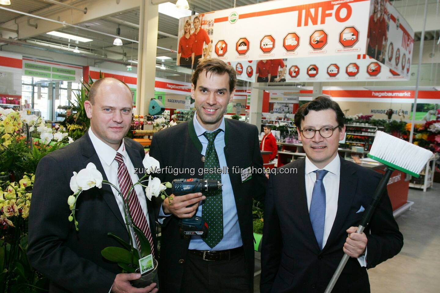 Wolfgang König (Marktleiter hagebaumarkt Fetter Eisenstadt), Andreas Fetter (GF hagebaumarkt Fetter Eisenstadt), Clemens Bauer (Niederlassungsleiter Einzelhandel hagebau Österreich) : hagebau eröffnet hagebaumarkt an ehemaligem Baumax-Standort in Eisenstadt : Neuer Standort im hagebau Einzelhandel stärkt Marktpräsenz : Arbeitsplätze bleiben in der Region erhalten : Fotocredit: hagebau/APA-Fotoservice/Hautzinger