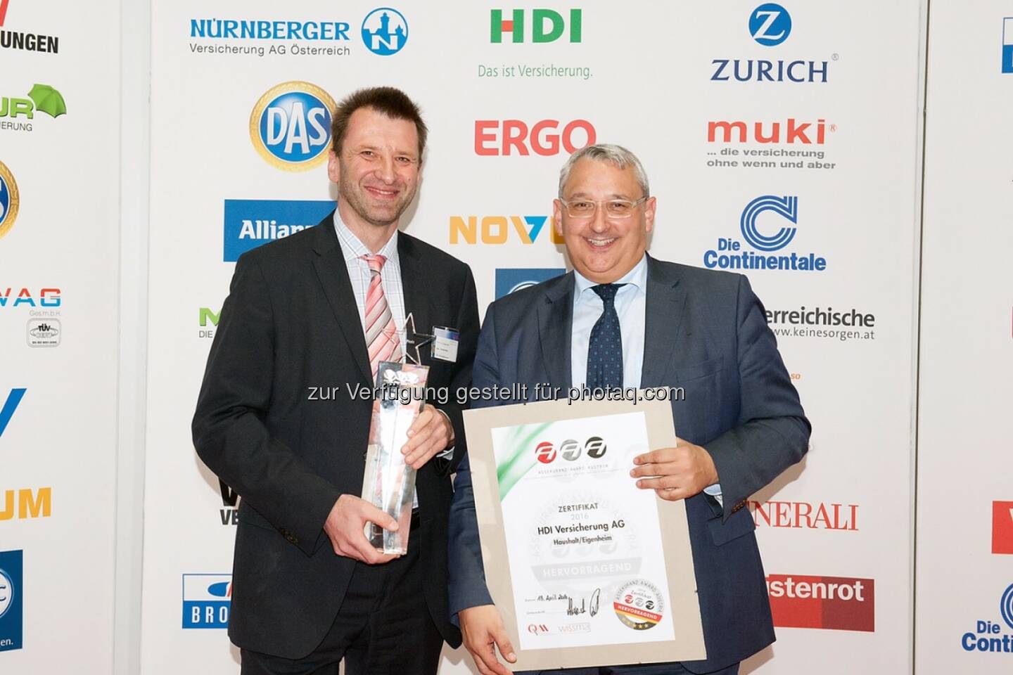 Günther Weiß (HDI Vorstandsvorsitzender), Thomas Lackner (HDI Vorstand) : Ausgezeichnet: HDI Haushalt/Eigenheim und Rechtsschutz Versicherung : Zwei Trophäen für HDI bei Assekuranz Award Verleihung 2016 : Fotocredit: HDI/Wolfgang Kunasz-Herzig (evenfoto.at)