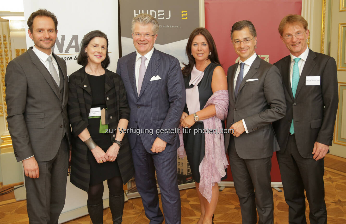 Gerhard Hudej (Gründer und GF Hudej Zinshausmakler GmbH), Brigitta Schwarzer (Geschäftsführende Gesellschafterin Inara GmbH), Constantin Veyder-Malberg (Mitglied des Vorstandes der Capital Bank – Grawe Gruppe), Andrea Maller-Weiß (Mitglied des Vorstandes der Bank Burgenland – Grawe Gruppe), Peter Ulm (CEO, 6B47 Real Estate Investors AG), Werner Festa (Gründer und GF, Interfides Wirtschaftsprüfungs- und SteuerberatungsgmbH) : Immobilien - sichere Wertanlage in unsicheren Zeiten? : Expertenrunde diskutierte verschiedene Aspekte der langfristigen Veranlagung von Stiftungsvermögen : Fotocredit: Inara GmbH/APA-Fotoservice/Hinterramskogler
