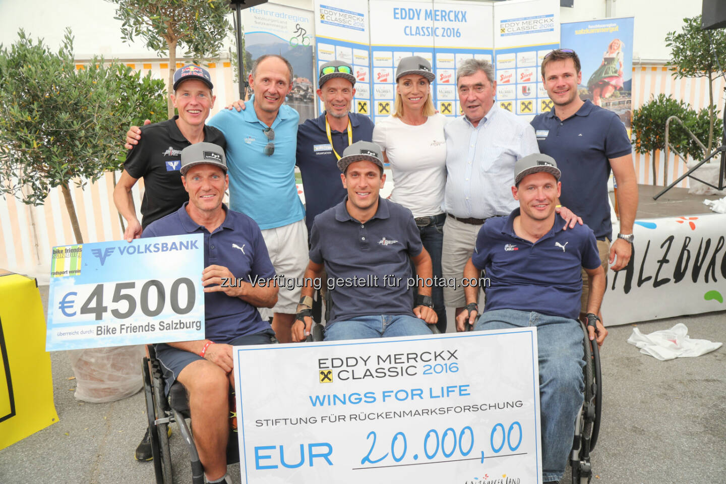 2. Reihe v.l.: Andi Goldberger, Leo Bauernberger, MBA (Geschäftsführer SLTG), Organisations-Chef Jakob Schmidlechner, Anita Gerhardter (CEO Wings for Life), Eddy Merckx, Thomas Körmer (GF TVB Fuschl am See).