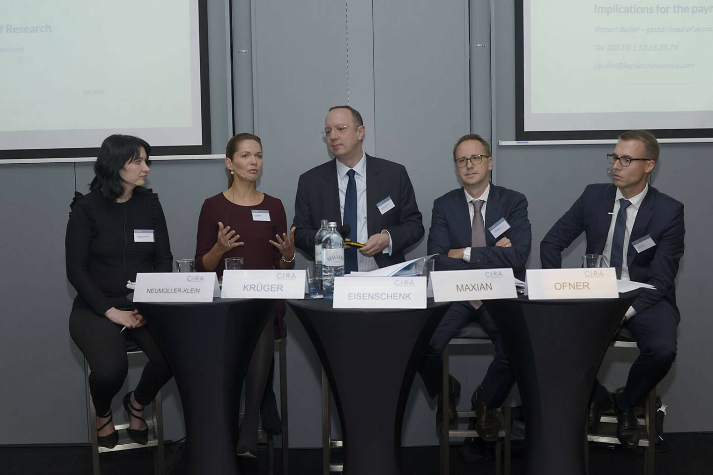 Diana Neumüller-Klein ( Strabag), Silke Krüger (Berenberg), Roman Eisenschenk (Kepler Cheuvreux), Stefan Maxian (Raiffeisen Centrobank AG, ÖVFA), Klaus Ofner ( Wienerberger AG)