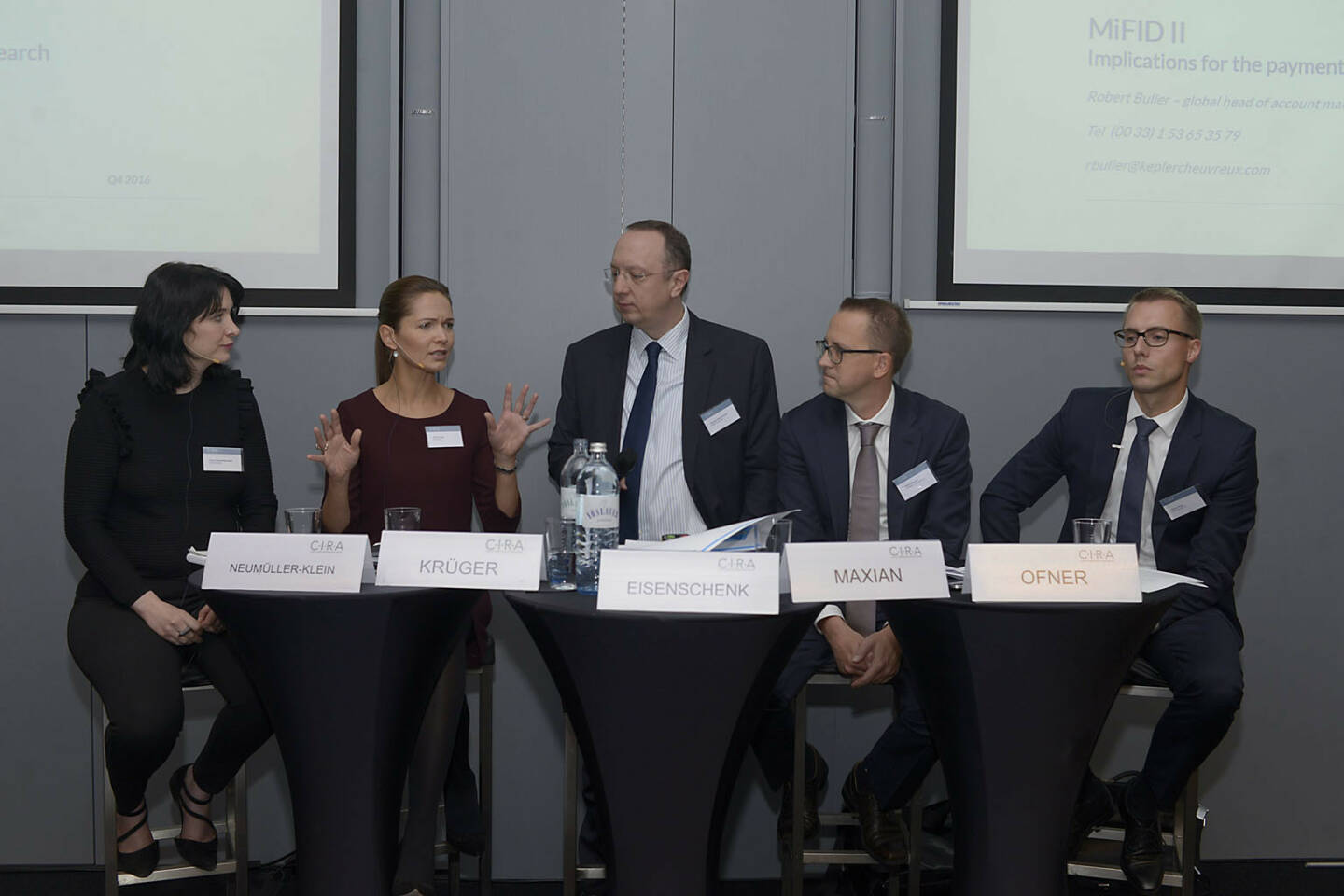 Diana Neumüller-Klein ( Strabag), Silke Krüger (Berenberg), Roman Eisenschenk (Kepler Cheuvreux), Stefan Maxian (Raiffeisen Centrobank AG, ÖVFA), Klaus Ofner ( Wienerberger AG)
