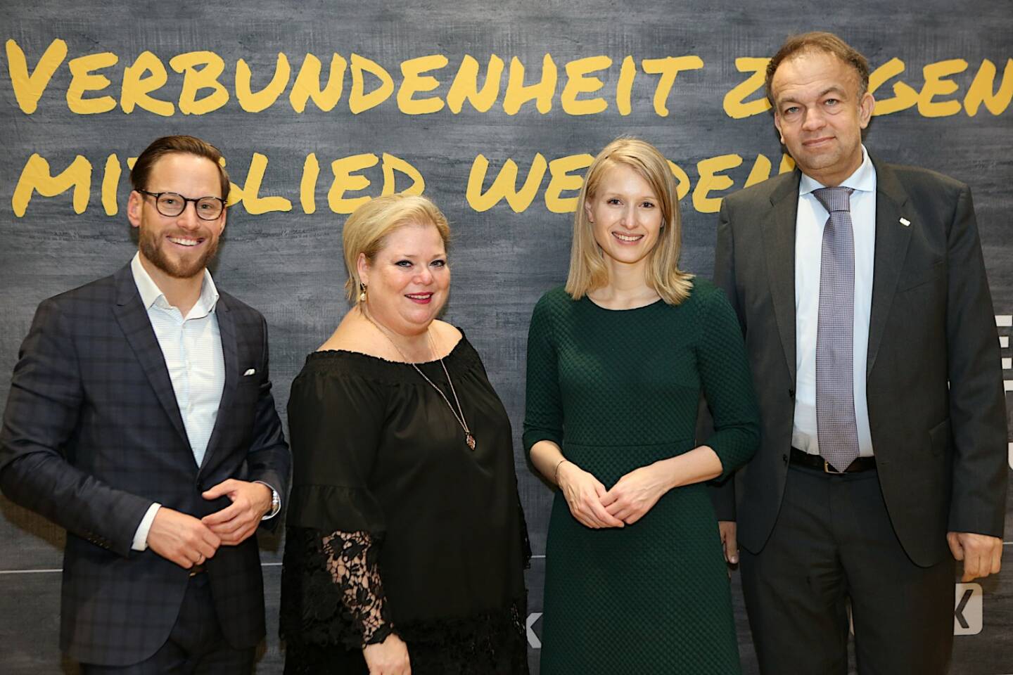Kepler Society feierte mit über 300 Gästen am Neujahrsempfang; (v.l.): Johannes Pracher (Geschäftsführer Kepler Society), Jutta Oberweger (stv. Vorstandsvorsitzende Kepler Society), Landesrätin Christine Haberlander und Rektor Meinhard Lukas; Copyright: Cityfoto/Streif; Abdruck honorarfrei