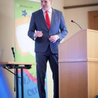 Börse Social Network-Roadshow, FinGroup AG-Vorstand Alexander Coenen präsentiert vor vollem Haus, Credit: Michaela Mejta