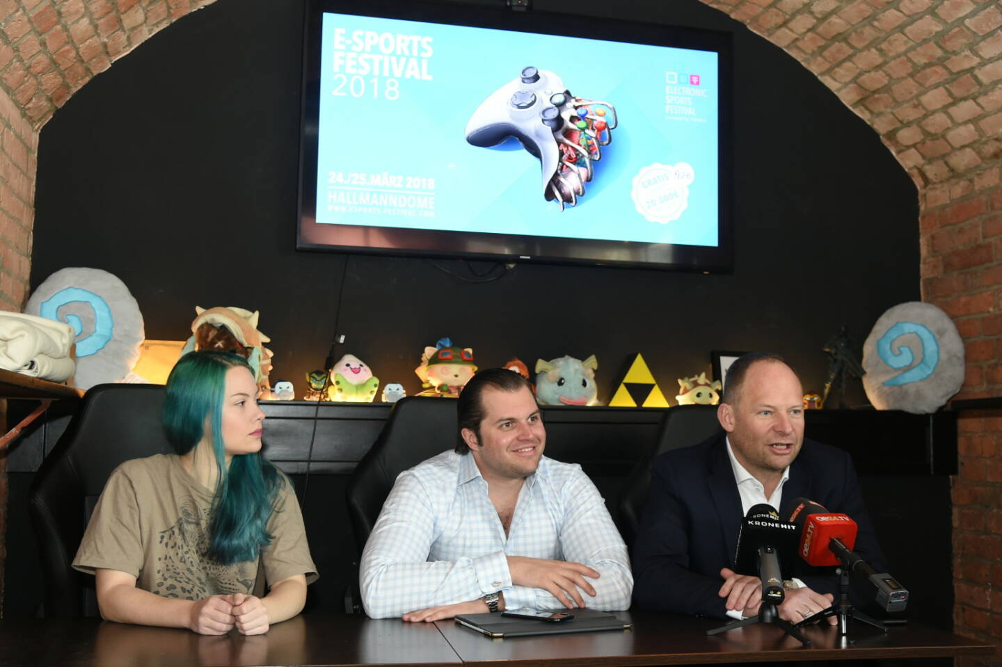 Das Electronic Sports Festival – powered by T-Mobile feiert am 24. und 25. März 2018 Premiere im Hallmann Dome. Die Veranstalter (im Bild: Alexander Knechtsberger, DocLX und Lorenz Edtmayer, DIAMIR Holding mit Chantal Frey, die in der Szene als Silvana bekannt ist) gaben im Rahmen eines Mediengesprächs letzte Details zum Fest bekannt. Credit: Leisure Communications, Christoph Jobst