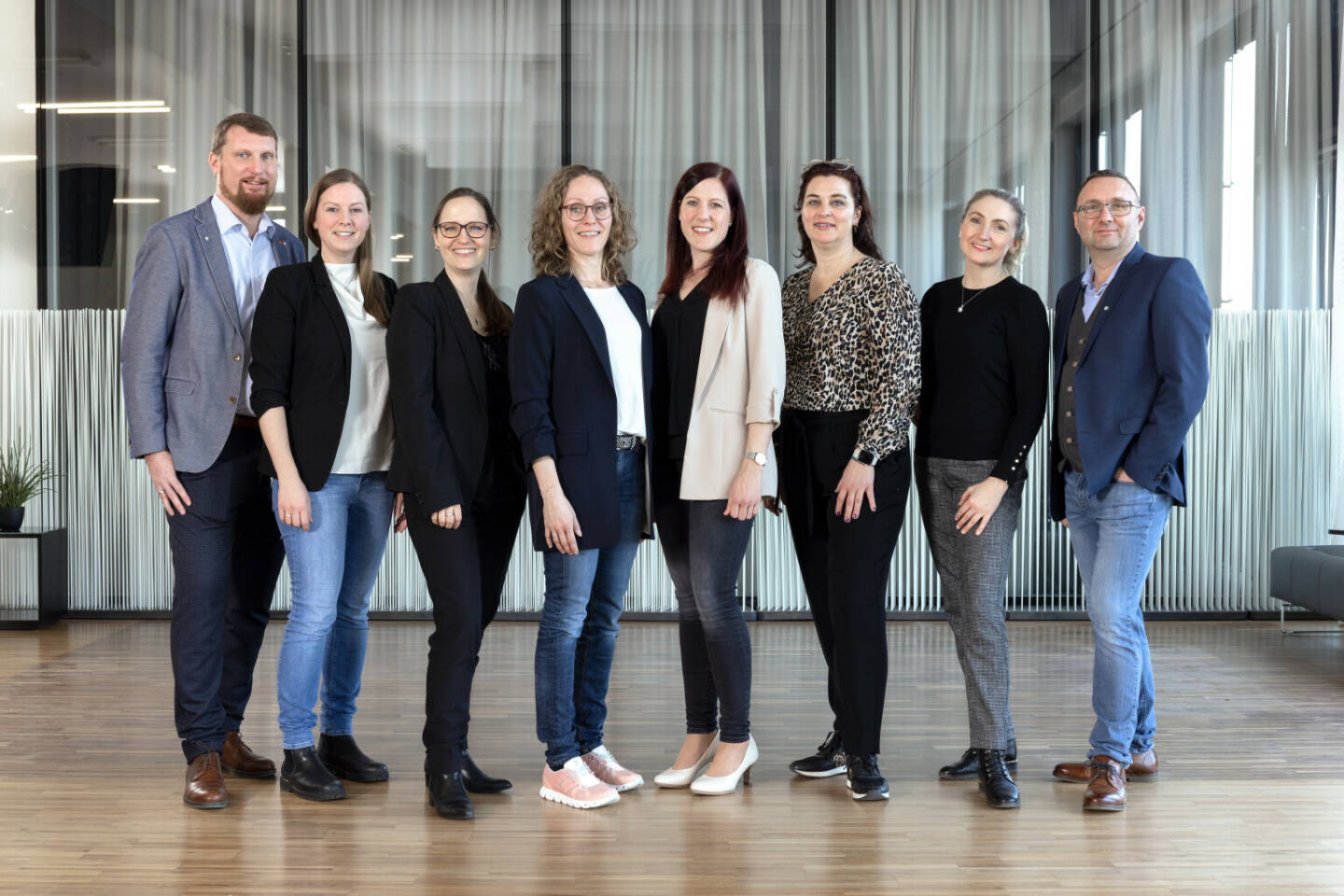 FACC: Jobsharing neu gedacht: Das Projektteam, bestehend aus IT, Communications, HR und dem Plattformanbieter JobTwins. V.l.n.r.: Alexander Hochmeier (VP IT & Security), Kristina Danninger (Senior Marketing & Communications Manager), Sigrid Uray-Esterer (JobTwins), Katharina Brunneder (Information Security Officer), Kathrin Gerauer (Information Security Officer), Martina Thoeress-Kofler (Group Lead Employer Branding), Katharina Miller (JobTwins) und Martin Pils (CISO). Foto by Georg Tiefenthaler (GETIFO)